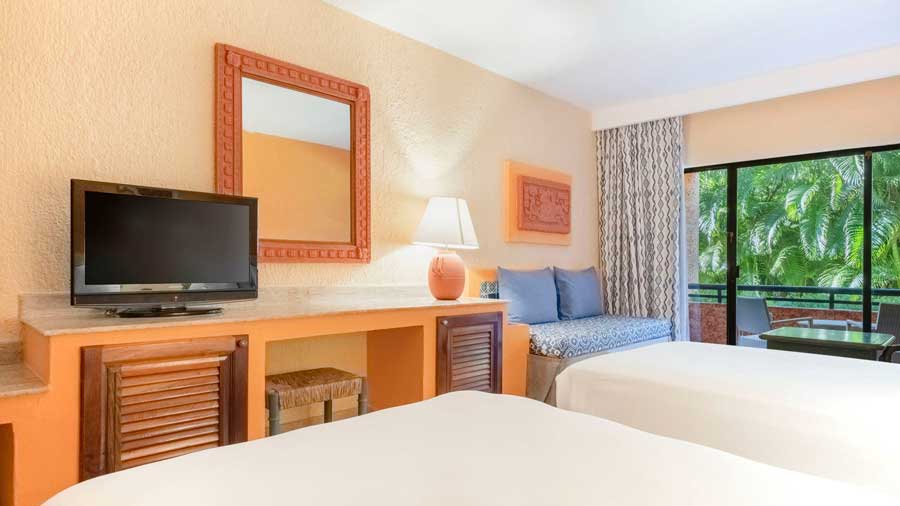 O quarto Duplo Perto da Piscina localiza-se perto da praia de areia branca em frente do hotel e da piscina, para que toda a sua família aproveite cada momento em grande estilo e com mais conforto. Em sua varanda privativa com vista para a floresta, pode descansar enquanto contempla a exuberante vegetação caribenha.