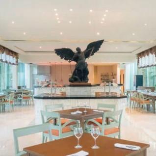Buffet principal hotel com especialidades mexicanas e pratos internacionais. Tem canto de salada, hambúrgueres, pizza, macarrão, legumes, mostrar culinária com carne grelhada e peixe, entre outros. No café da manhã buffet, você pode escolher entre uma grande variedade de frutas, pratos quentes, cereais, laticínios e outras opções.