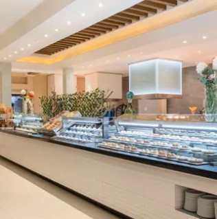 Buffet com cozinha internacional e show cooking. Opções de massas, carnes e peixes, legumes e saladas. Noites temáticas mexicanas e de gala. Café da manhã com grande variedade de frutas, laticínios, embutidos e pratos quentes.