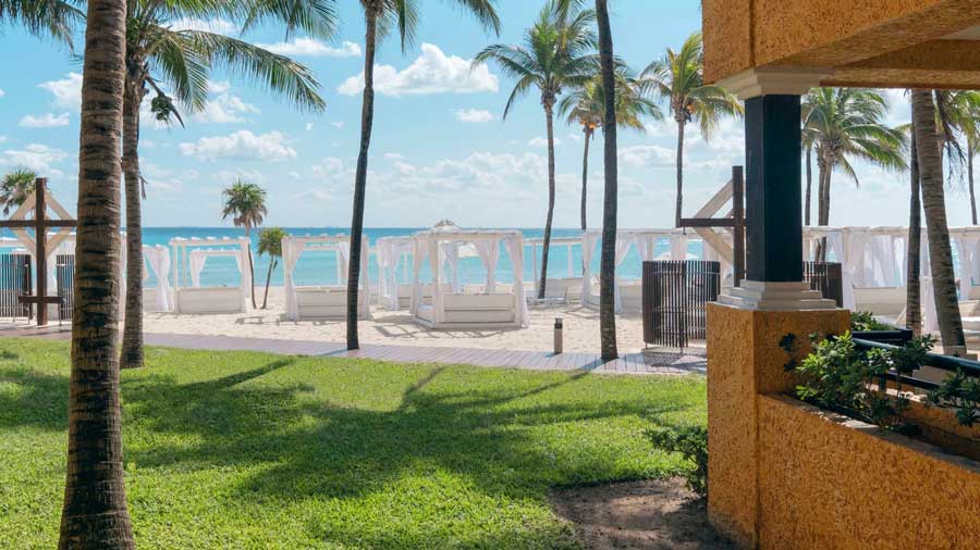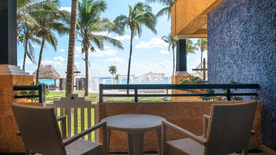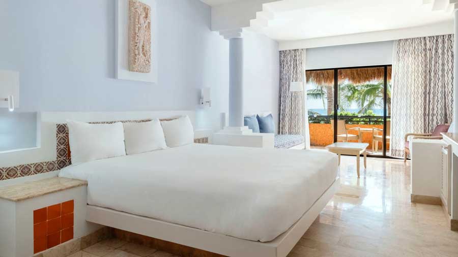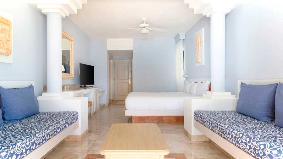 Contemple a magnífica vista para o mar do Caribe da Suite Júnior em frente ao mar. Ela está tão perto da praia e da piscina do hotel que você vai poder descer e se refrescar a qualquer momento. A suite oferece todas as comodidades para que suas férias sejam simplesmente inesquecíveis.