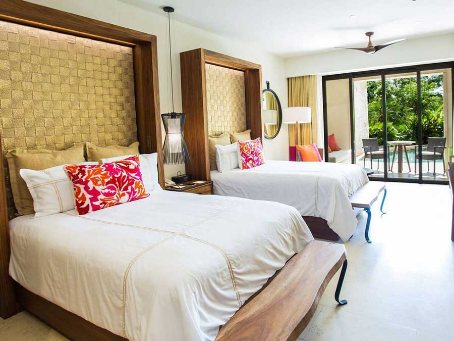 O Secrets Akumal Riviera Maya oferece o total de 434 suites para não fumadores, muitas oferecem magníficas vista do mar, todas escaladas para ter vistas ótimas da exótica paisagem, piscina e mar. Cada santuário privado está equipado com uma nova interpretação da arte mexicana, incluso os bordados estilo Huipil, Rebozo de Oaxaca e a Huasteca com detalhes em ouro maya. Cada suite luxuosa está totalmente equipada com uma cama king size ou duas camas individuais, uma sacada ou terraço privados, uma banheira de hidromassagem nas acomodações para dois, frigorífico de cortesia e muito mais.