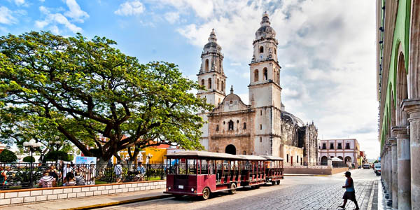 Pequeno-almoço. Saída até ao Rio Yaxhá (água azul), atravessando uma paisagem sinuosa e uma densa vegetação, para desfrutar do ambiente circundante às Cascatas de Agua Azul com a sua água de cor azul aliada ao verde intenso da vegetação. Continuação até à cascata de Misol-Ha onde poderá tomar banho. Desfrute de uma noite de tranquilidade longe da multidão em Palenque.DIA 7PALENQUE - CAMPECHE (MEIA PENSÃO)